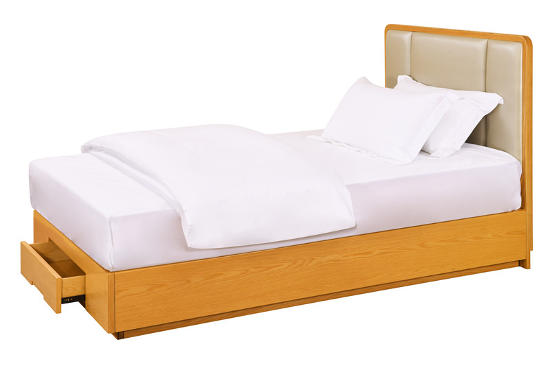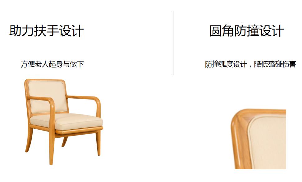 基材:為實木白蠟木框架結構,臺面多層板貼白蠟木皮。 床屏軟包,便于老人倚靠