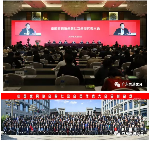 2020年10月19日上午,中國家具協會第七次會員代表大會在古都西安舉行。十二屆全國人大內務司法委員會委員、中央編辦原副主任,現中國輕工業聯合會黨委書記、會長張崇和,中國輕工業聯合會黨委副書記、中國家具協會理事長徐祥楠,中國輕工業聯合會黨建人事部主任楊曙光,中國家具協會原理事長賈清文、朱長嶺,中國家具協會副理事長兼秘書長張冰冰,中國家具協會副理事長屠祺,中國家具協會專家委員會副主任劉金良、陳寶光,東莞厚街鎮鎮長葉可陽,東莞厚街鎮人大主席方活力,龍江鎮副鎮長盧國漢,海虞鎮副書記李春洪以及來自全國的會員代表500多人出席大會。會議由中國家具協會副理事長兼秘書長張冰冰主持。