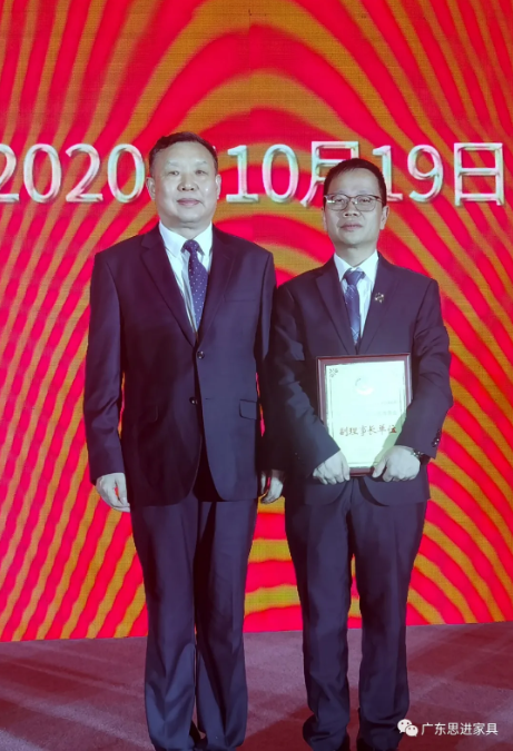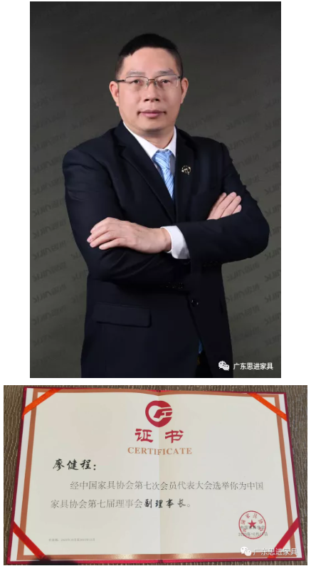 本次大會上,思進家具憑借過硬的品牌實力,思進董事長兼創始人廖健程先生榮幸當選為“中國家具協會副理事長”,思進家具再一次以實力,印證了其在品牌、產品、服務等方面的行業地位和創新精神。
