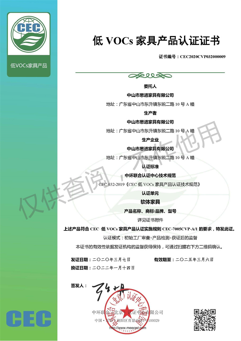 低VOC軟體家具